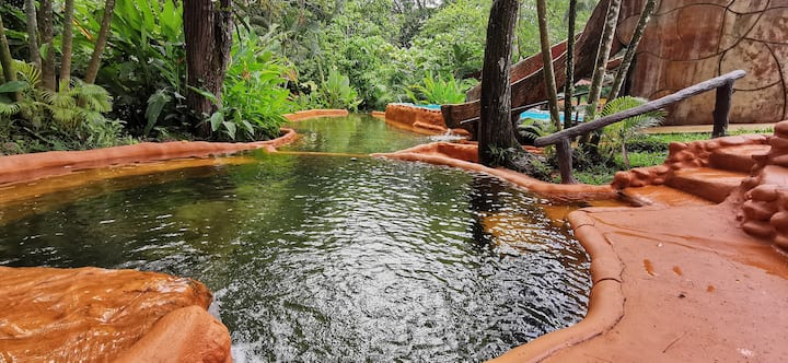 This tree House is in the Bio Thermales natural resort (part of a 35 acre rainforest!) Guests enjoy free 24 hour access to the 12 natural hot and cool springs pools of various temperatures and rainforest trails. The small and large cool springs pools both have water slides.