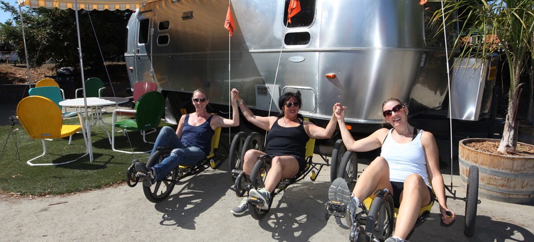 This campsite features six Airstreams that have everything you need for a luxurious glamping trip – including a kitchen, bathroom, AC and heating – while the site itself plays up the fun, retro theme with pink flamingos and colorful vintage patio furniture. It’s the perfect spot for camping vibes without actually pitching a tent!