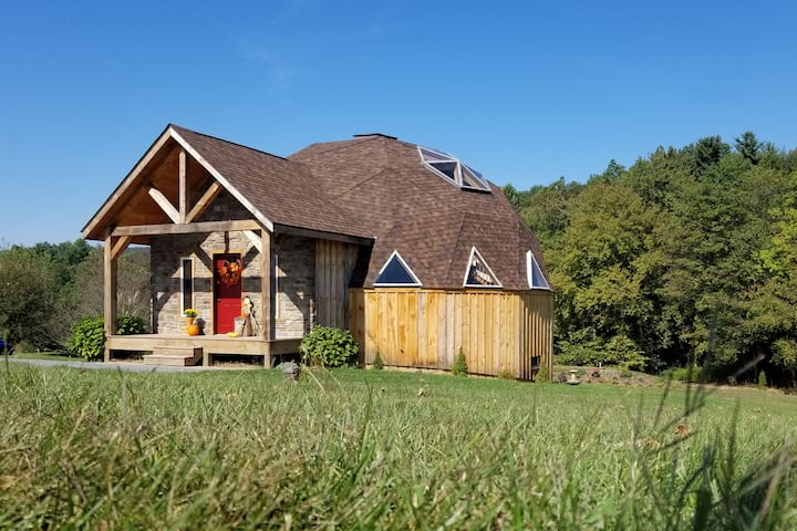 This pretty dome home is in the heart of apple country surrounded by orchards and only 10 minutes from Pine Grove Furnace State Park and 25 minutes from Gettysburg. It sleeps six guests with cosy beds and a great kitchen. Enjoy the sounds of nature as you disconnect from the busyness of the world relaxing on the back deck.